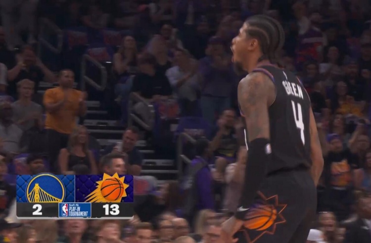 这么大空位!?杰伦·格林45°三分命中 太阳13-0攻击波打停勇士